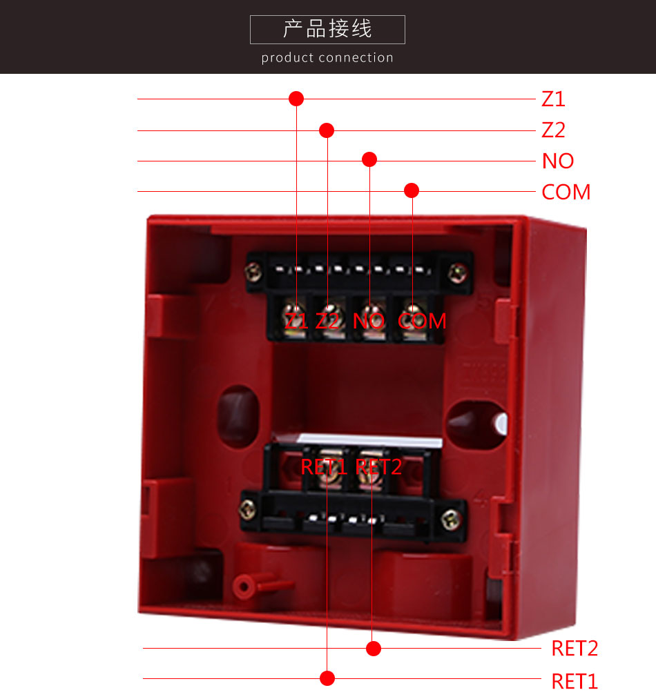 ●按下消火栓按片,可由消火栓提供獨(dú)立輸出觸點(diǎn),可直接控制其它外部設(shè)備