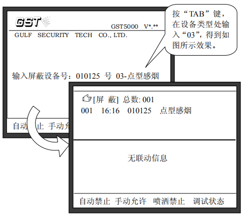d.按“確認”鍵存儲,如該設(shè)備未曾被屏蔽,屏幕的屏蔽信息中將增加該設(shè)備,否則在顯示屏上提示輸入錯誤。