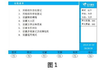 ① 按“功能”鍵,進入選項菜單,按“F4 安裝” 鍵,輸入二級密碼,按“確認(rèn)”鍵,進入安裝菜單界面(圖1)。