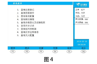 ① 按“功能”鍵,進入選項菜單,按“F1 查詢”鍵,輸入二級密碼,按“確認(rèn)”鍵,進入查詢菜單界面(圖4)。