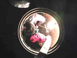 3、另一人接好水帶和閥門口。