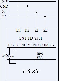 GST-LD-8301輸入輸出模塊現(xiàn)場接線模擬圖: